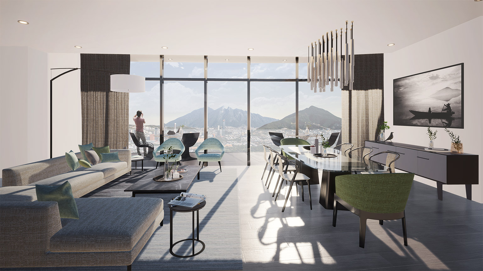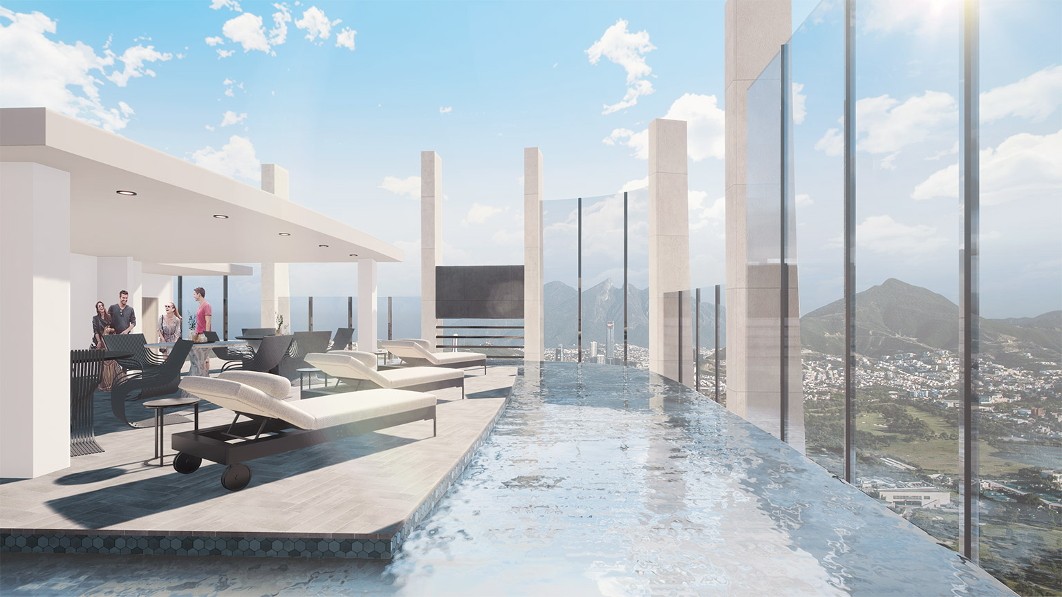 Al interior de la torre, los espacios de las tres tipologías de departamentos están diseñados para aprovechar las privilegiadas vistas a la vez que se enlazan fluidamente las diferentes experiencias del hogar. Más aún, Torre Hedera también ofrece varias amenidades: gimnasio, estudio de yoga, estudio de spinning, terrazas e impresionantes albercas en la azotea con vistas panorámicas de la ciudad.